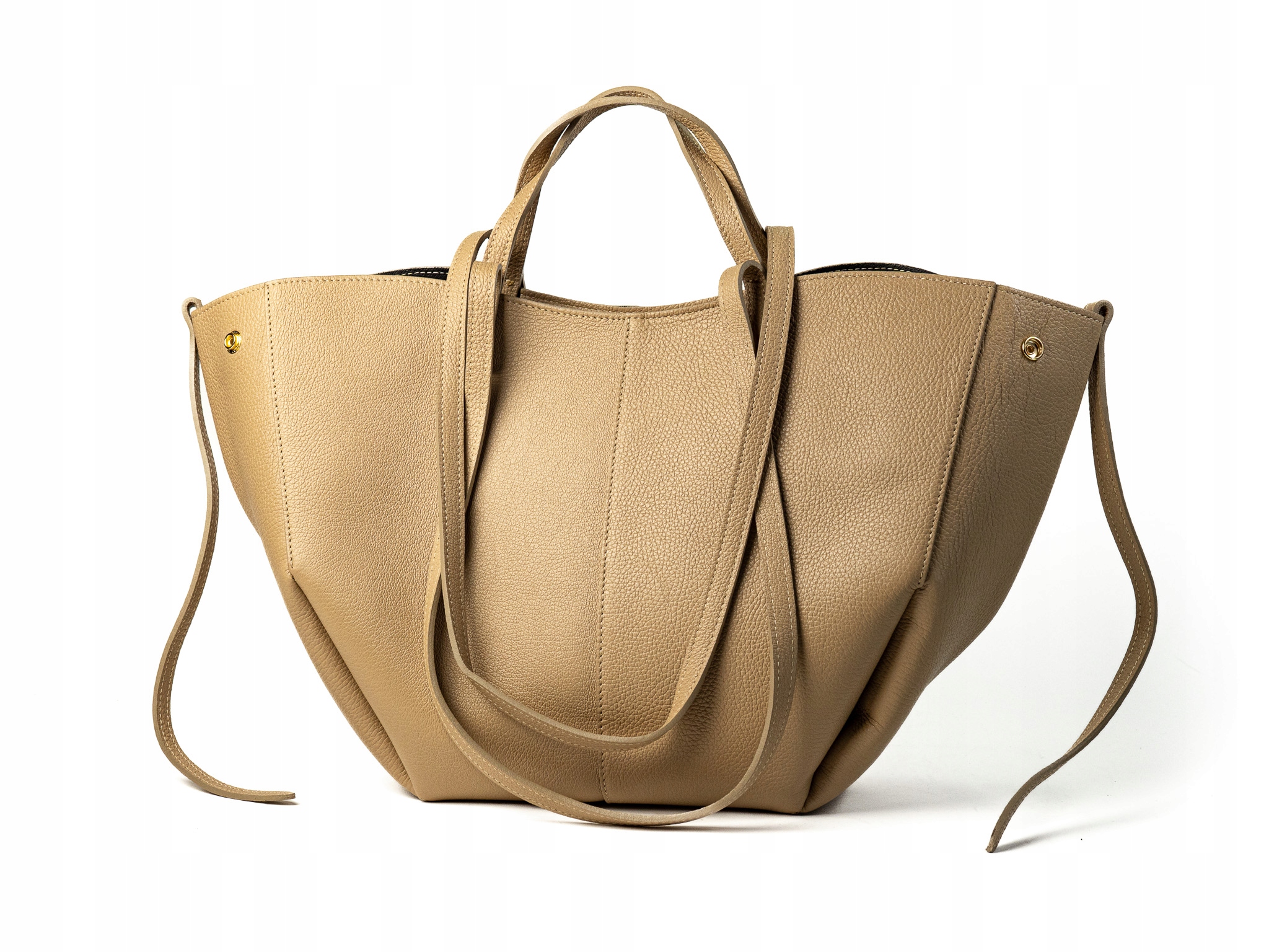 Torebka damska shopper Pola wykonana z wysokiej jakości skóry naturalnej. Duża i przestronna, idealna na laptopa, tablet oraz codzienne niezbędne rzeczy. Posiada dużą główną komorę oraz wewnętrzną saszetkę. Wyposażona w krótkie i długie uchwyty, dodatkowo po bokach guziki umożliwiające rozszerzenie lub zwężenie torby w zależności od potrzeb.
