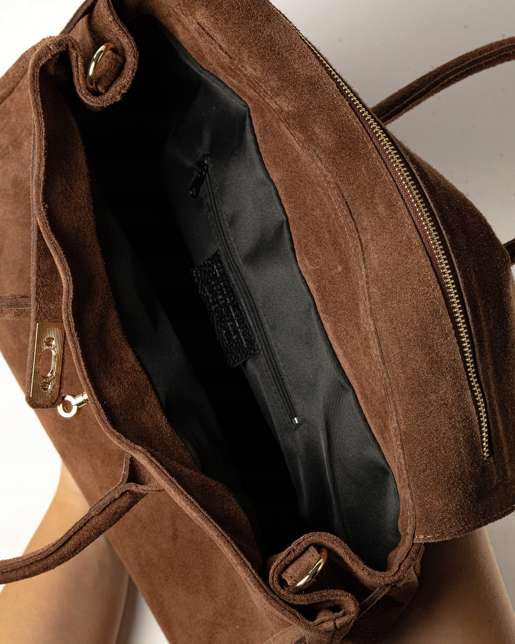 Torebka damska Vittoria to klasyczna, elegancka torba premium wykonana z wysokiej jakości włoskiego zamszu. Posiada jedną dużą komorę, idealną na laptopa, dokumenty i codzienne akcesoria. Wewnątrz znajduje się kieszonka na zamek. Wyposażona w wygodne uchwyty oraz regulowany, odpinany pasek, który pozwala nosić ją na ramieniu.