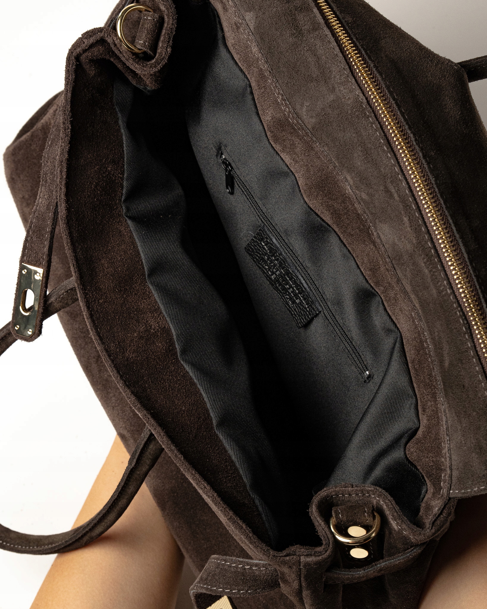 Torebka damska Vittoria to klasyczna, elegancka torba premium wykonana z wysokiej jakości włoskiego zamszu. Posiada jedną dużą komorę, idealną na laptopa, dokumenty i codzienne akcesoria. Wewnątrz znajduje się kieszonka na zamek. Wyposażona w wygodne uchwyty oraz regulowany, odpinany pasek, który pozwala nosić ją na ramieniu.