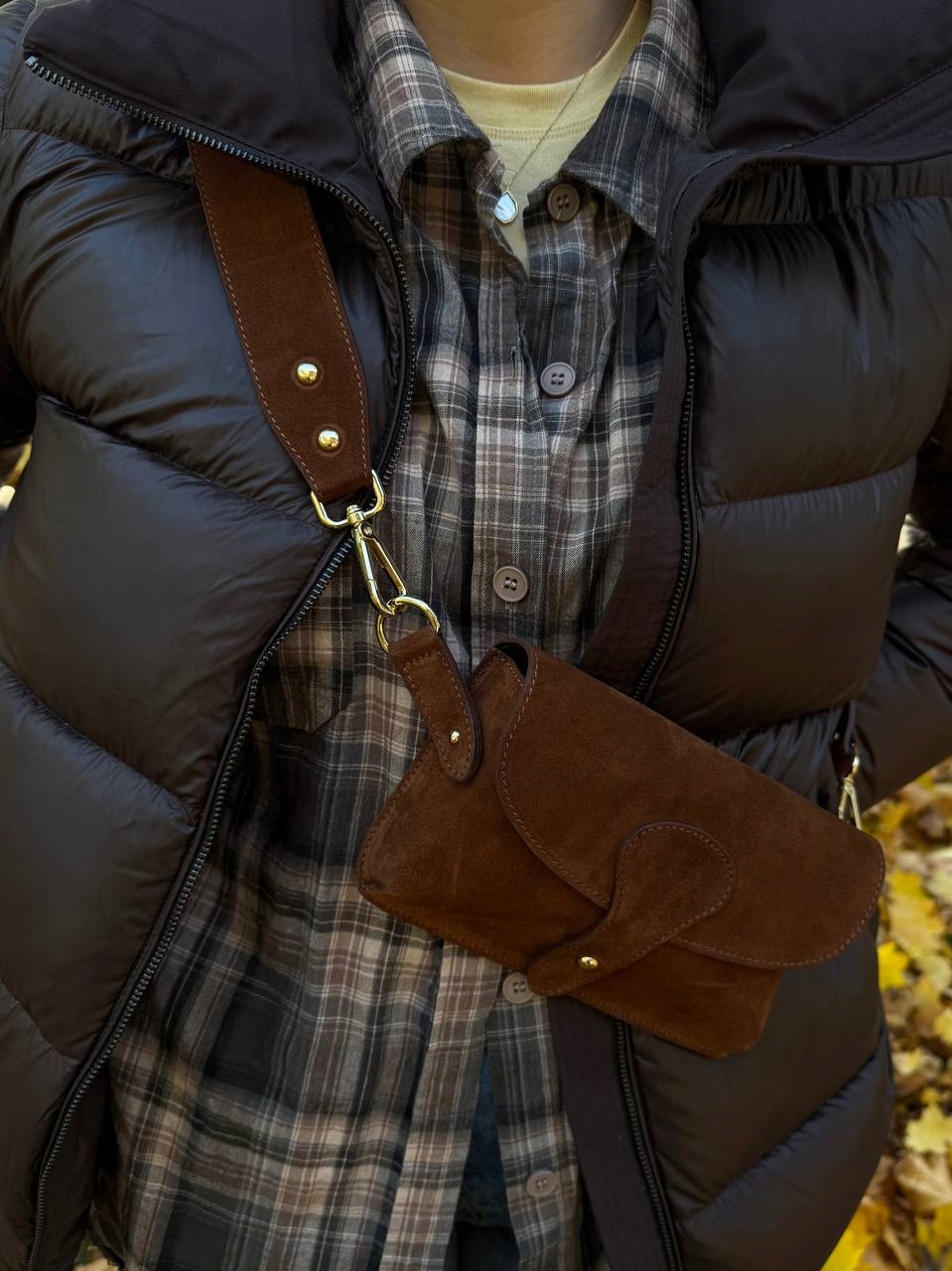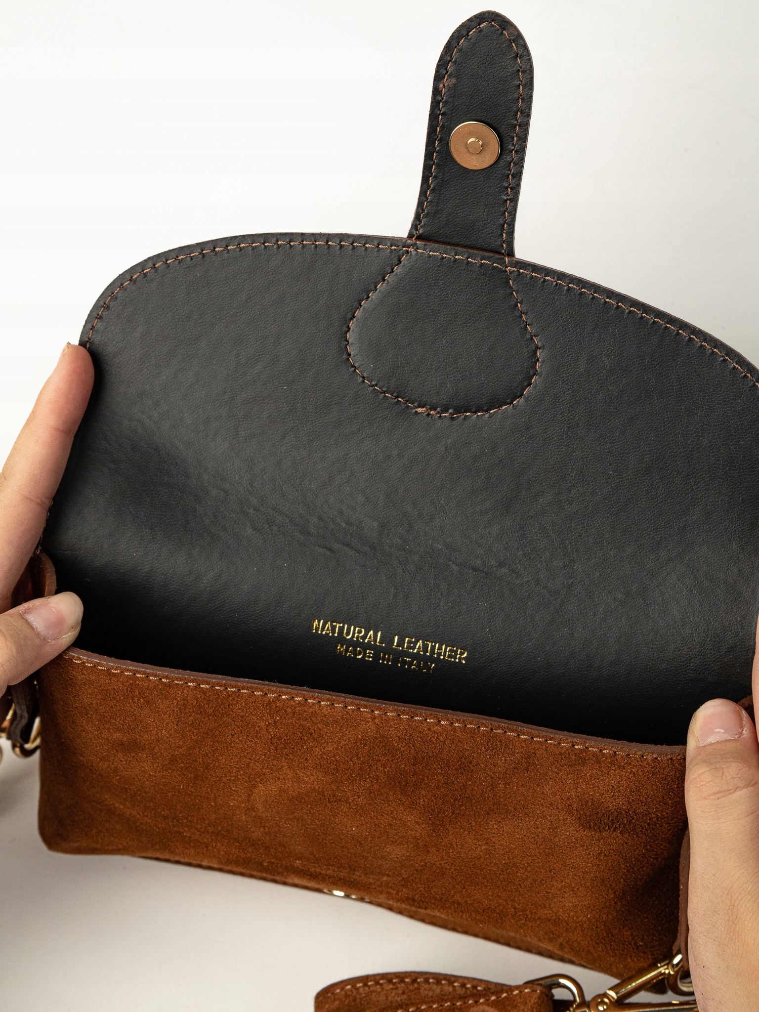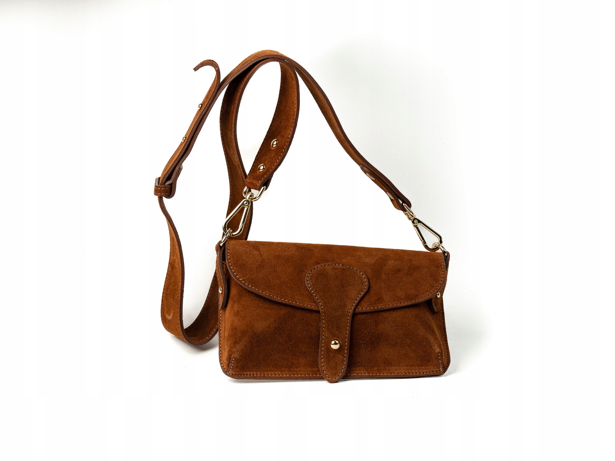 Torebka damska Amalfi wykonana z wysokiej jakości włoskiego zamszu. Posiada jedną główną komorę, idealną na telefon, klucze i drobne akcesoria. Wyposażona w odpinany pasek, dzięki czemu można ją nosić także jako elegancki clutch.