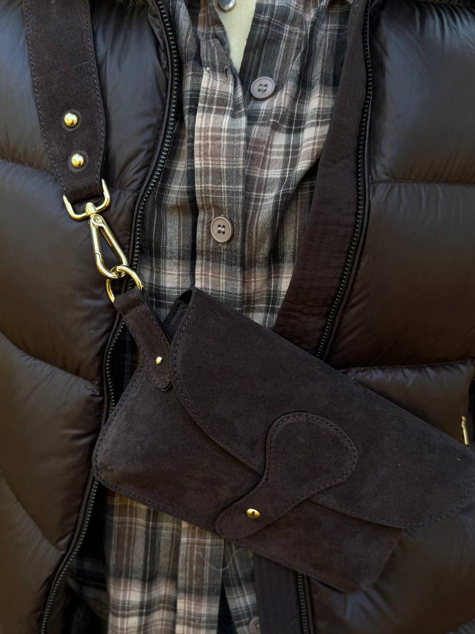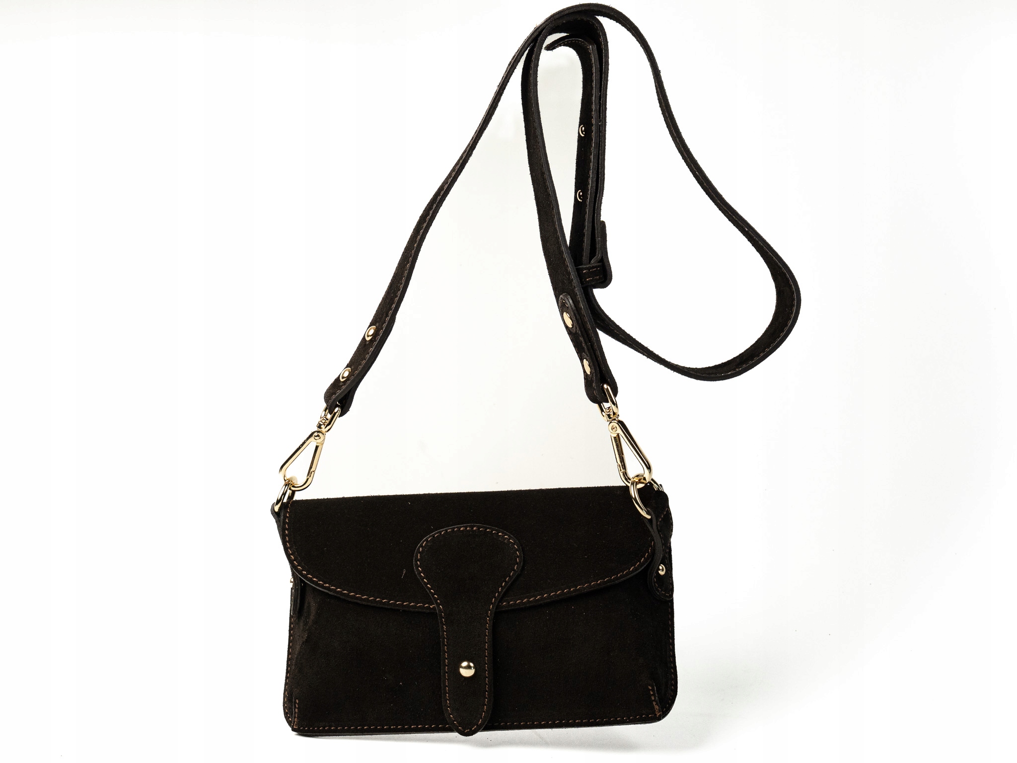 Torebka damska Amalfi wykonana z wysokiej jakości włoskiego zamszu. Posiada jedną główną komorę, idealną na telefon, klucze i drobne akcesoria. Wyposażona w odpinany pasek, dzięki czemu można ją nosić także jako elegancki clutch.