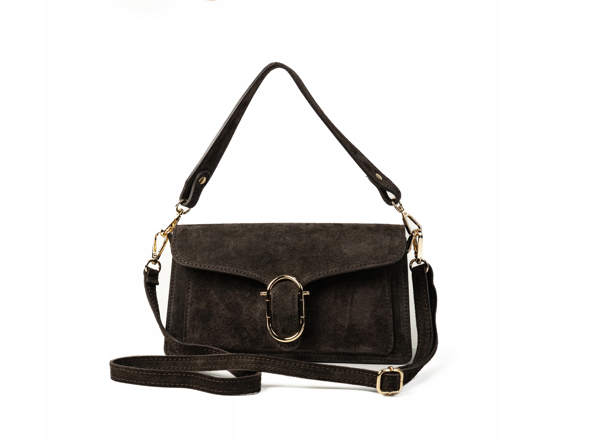 Torebka damska Valentina wykonana z wysokiej jakości zamszu. Posiada dwie główne komory, środkową komorę z małym kieszonkowym suwakiem oraz dwa paski – jeden krótki i wygodny, drugi odpinany i regulowany. Idealna na codzienne wyjścia, mieści telefon, portfel i drobne akcesoria.