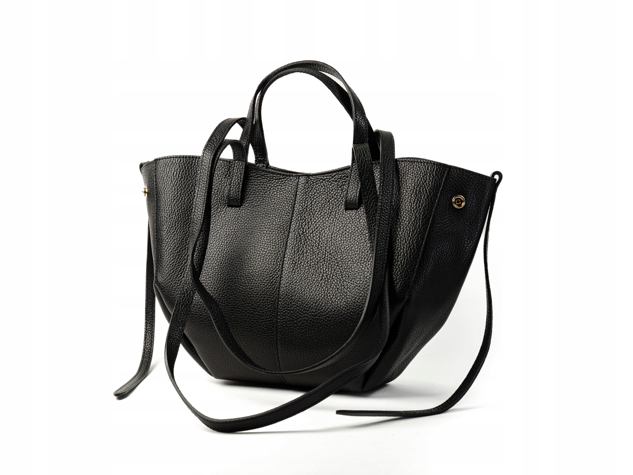 Torebka damska shopper Pola wykonana z wysokiej jakości skóry naturalnej. Ma dużą główną komorę oraz wewnętrzną saszetkę. Wyposażona w krótkie i długie uchwyty, dodatkowo po bokach posiada guziki umożliwiające rozszerzenie lub zwężenie torby w zależności od potrzeb. Idealna na codzienne wyjścia i do pracy.
