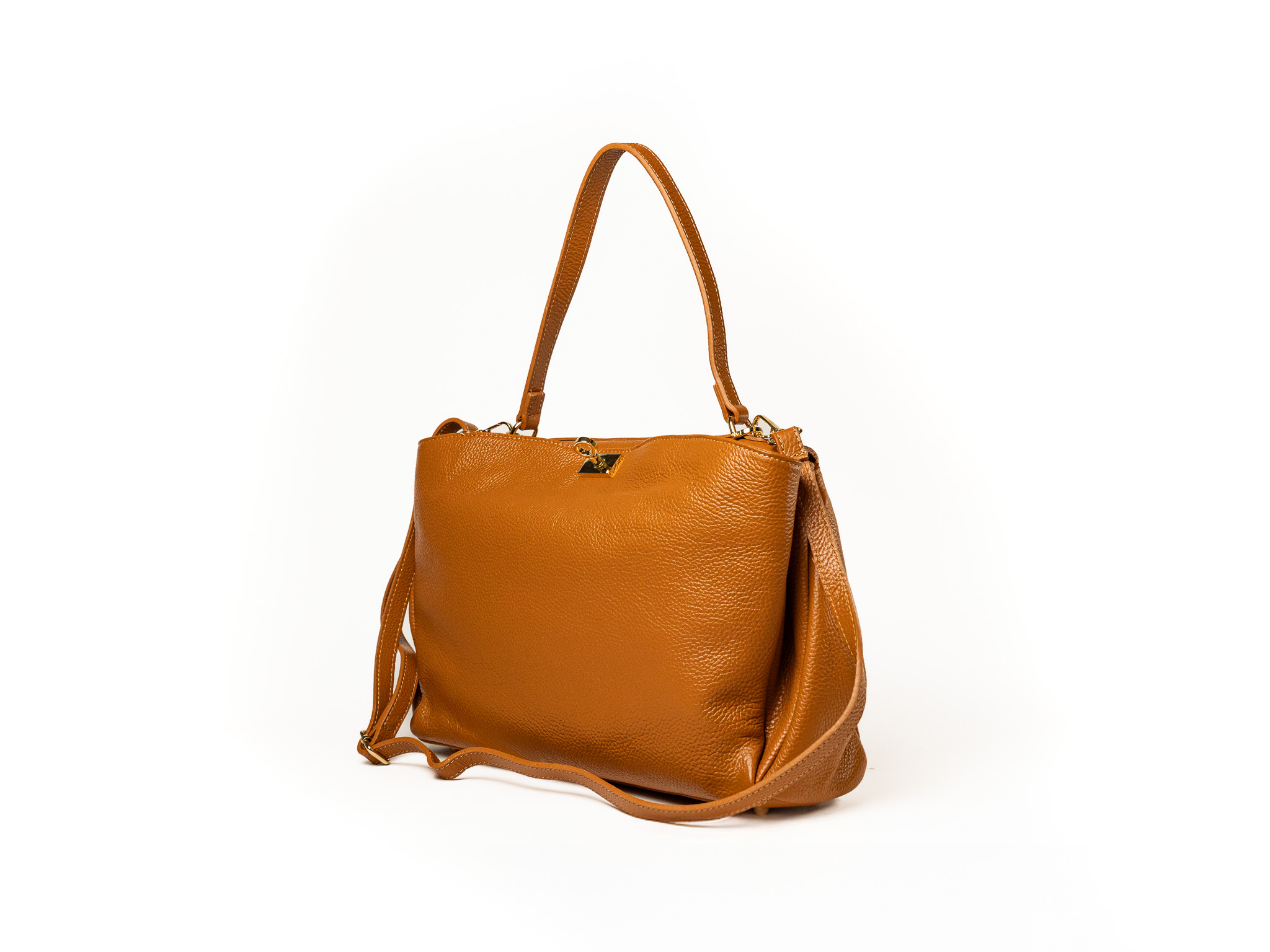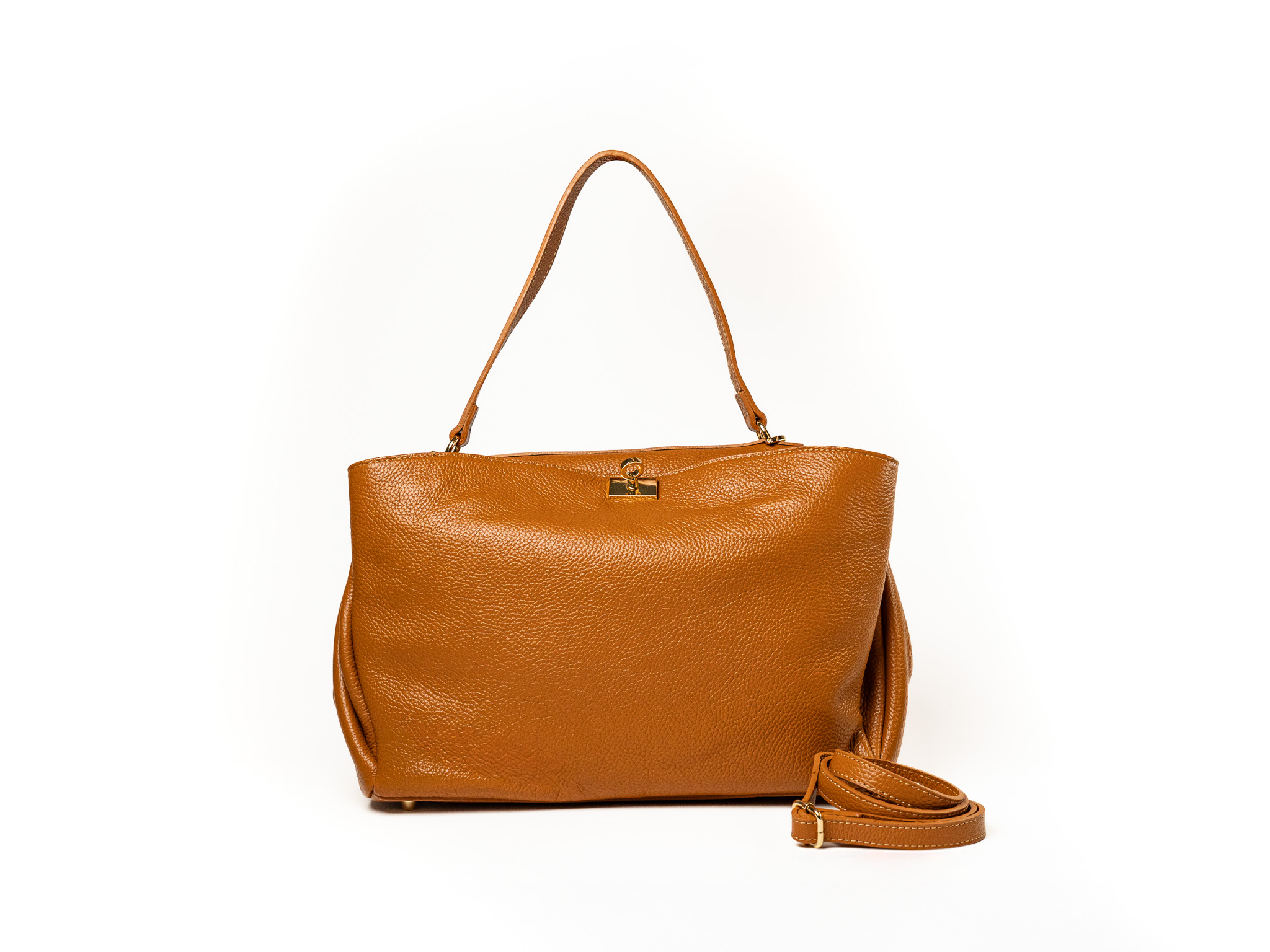 Torebka damska Tiziana wykonana z wysokiej jakości włoskiej skóry. Duża i pojemna, idealna na codzienne niezbędne rzeczy. Posiada dwie główne komory oraz dodatkowy kieszonkowy schowek na zamek. Wyposażona w wygodną rączkę oraz odpinany, regulowany pasek do noszenia na ramieniu.