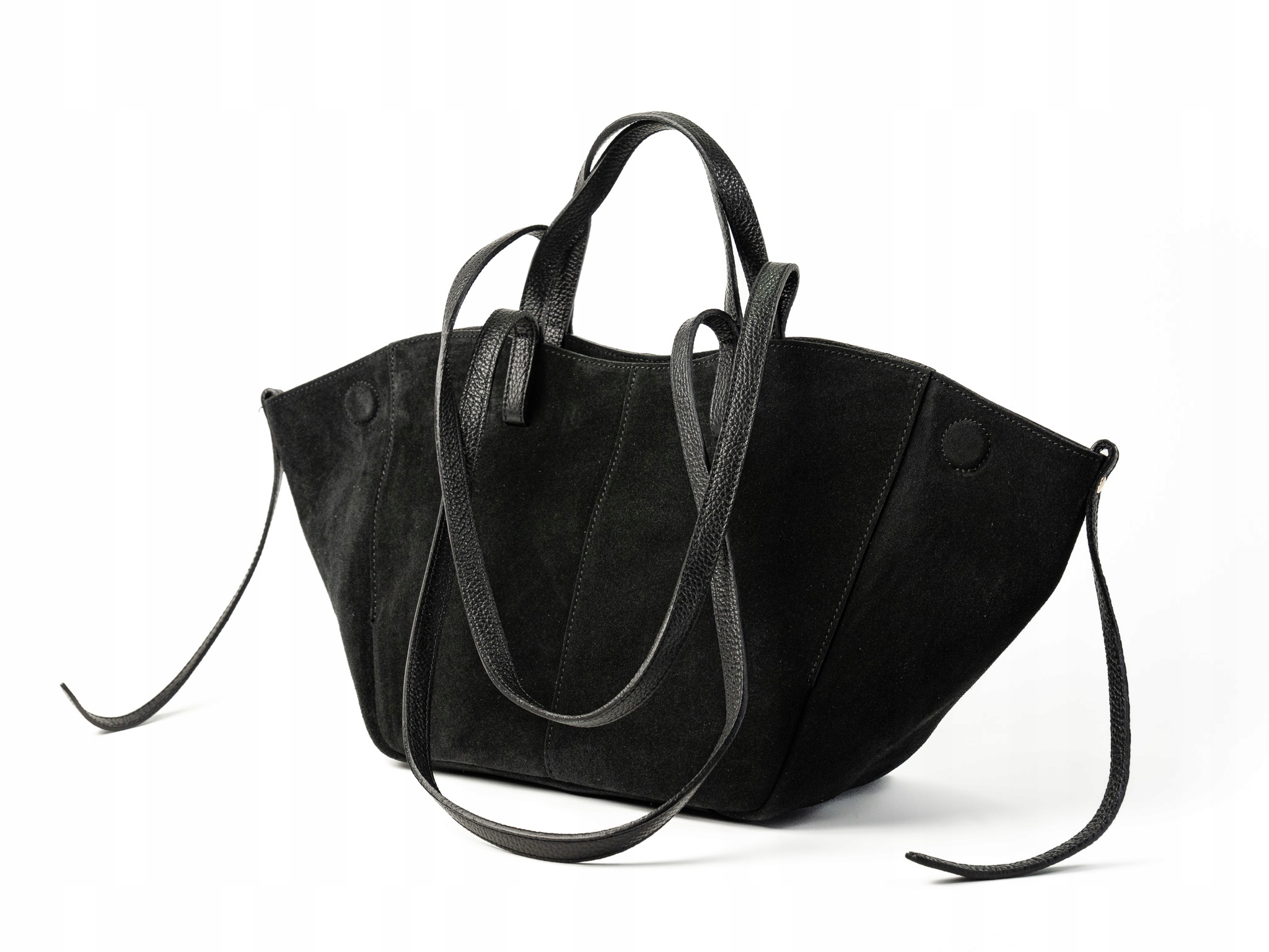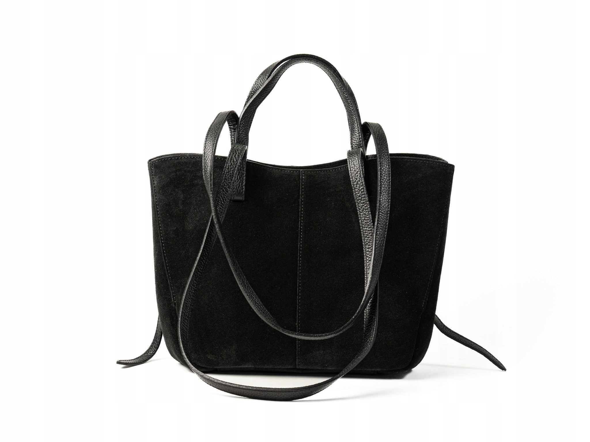 Torebka damska shopper Celia wykonana z wysokiej jakości włoskiego zamszu. Posiada jedną dużą główną komorę oraz wewnętrzną saszetkę. Zapięcie na magnesy umożliwia wygodne użytkowanie. Wyposażona w krótkie i długie uchwyty, idealna do noszenia na ramieniu jako shopper. Elegancka, funkcjonalna i wykonana z wysokiej jakości materiałów.