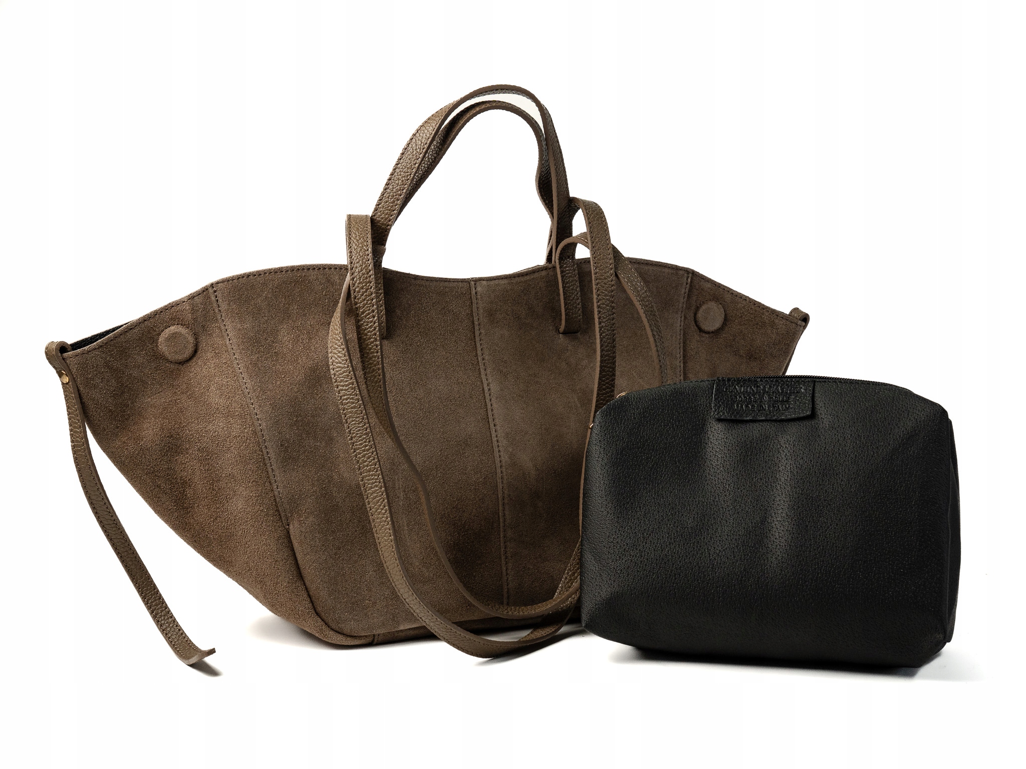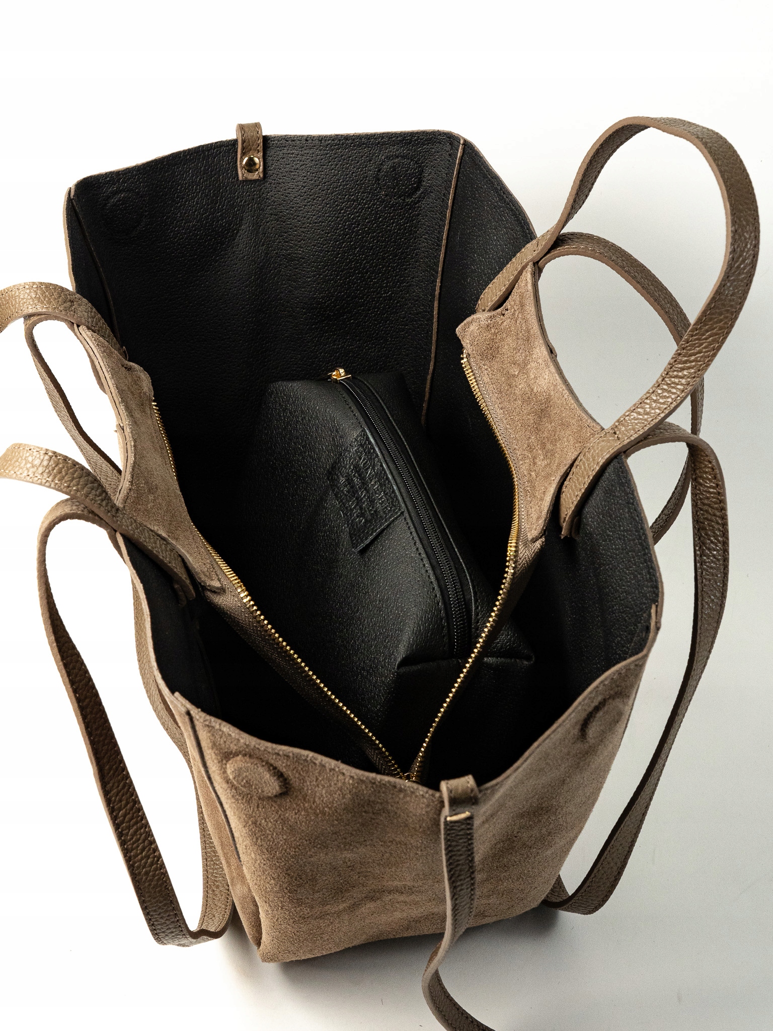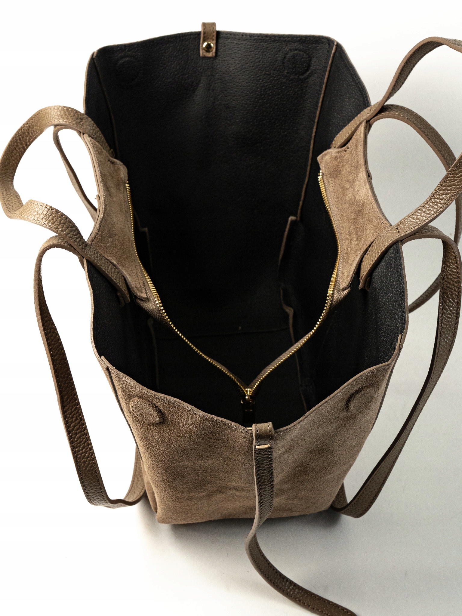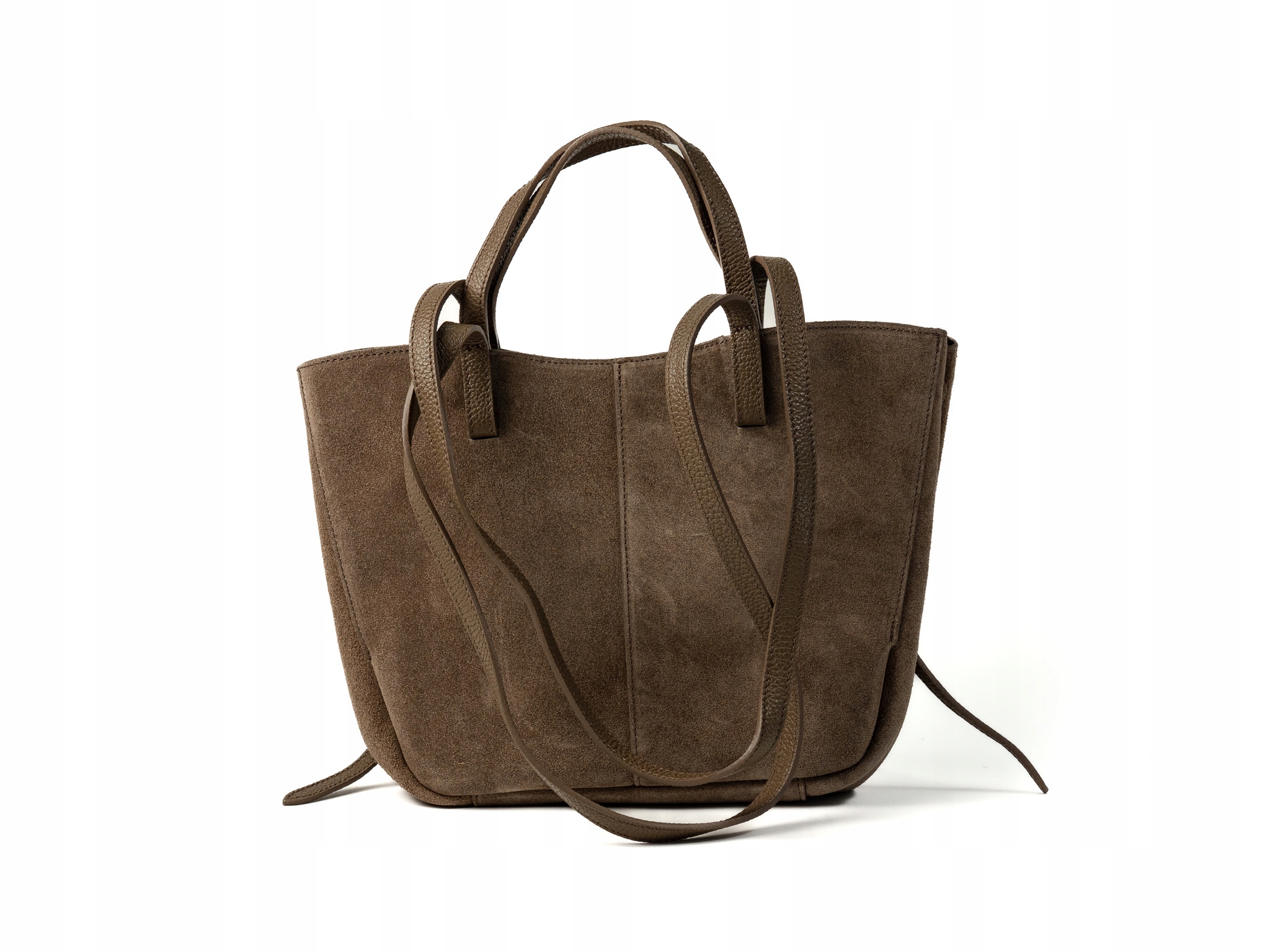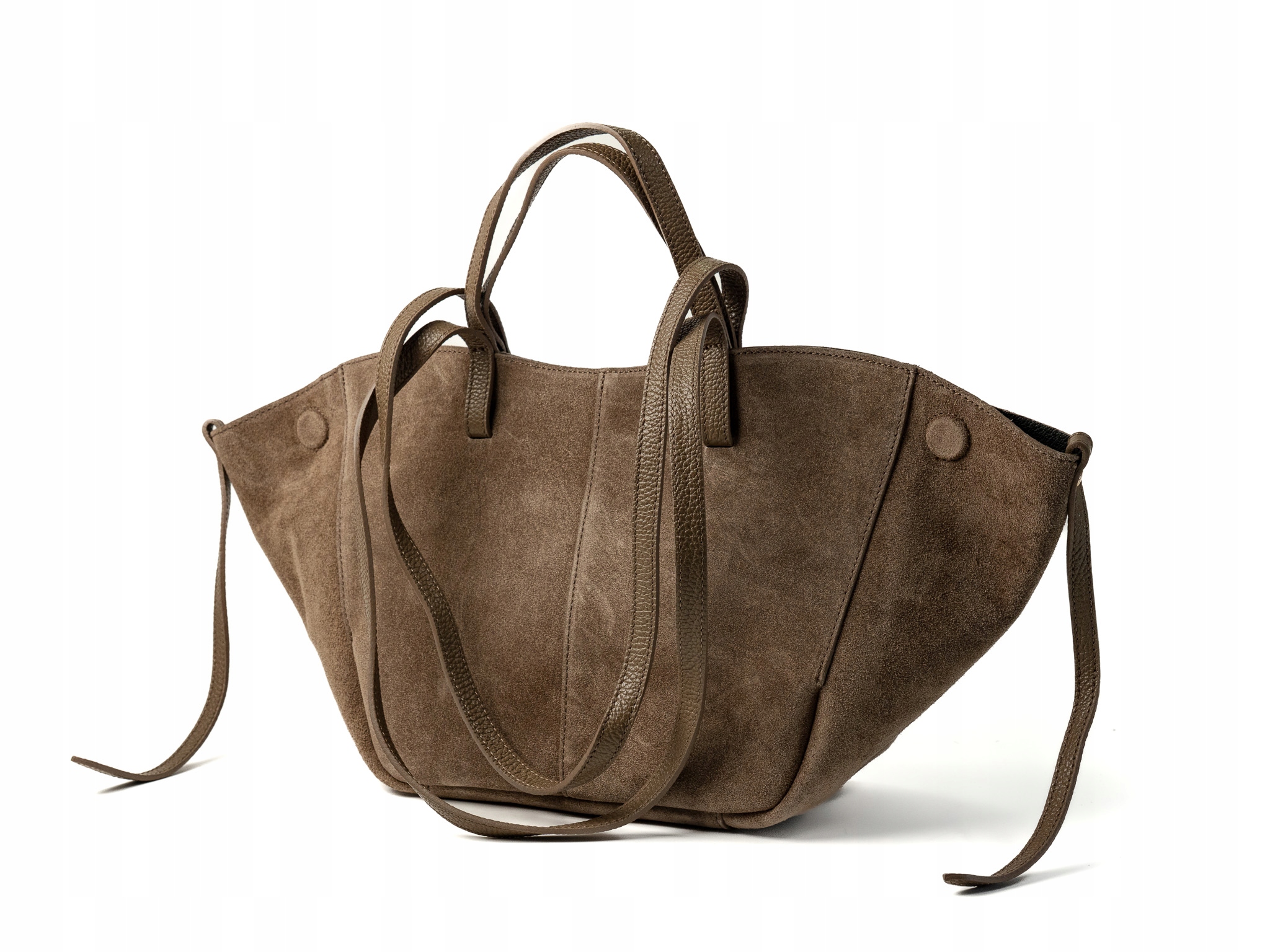 Torebka damska shopper Celia wykonana z wysokiej jakości włoskiego zamszu. Posiada jedną dużą główną komorę oraz wewnętrzną saszetkę. Zapięcie na magnesy umożliwia wygodne użytkowanie. Wyposażona w krótkie i długie uchwyty, idealna do noszenia na ramieniu jako shopper. Elegancka, funkcjonalna i wykonana z wysokiej jakości materiałów.
