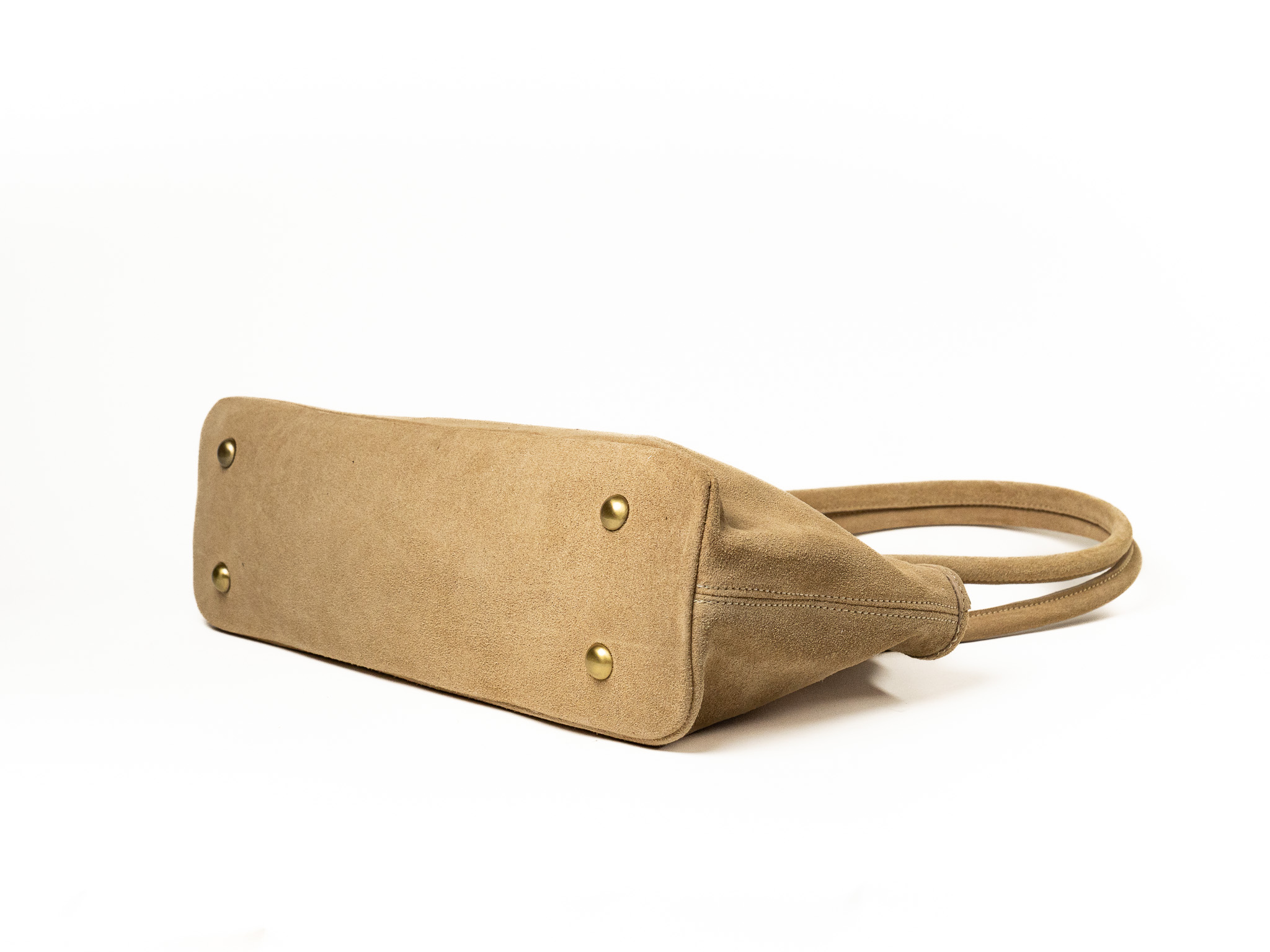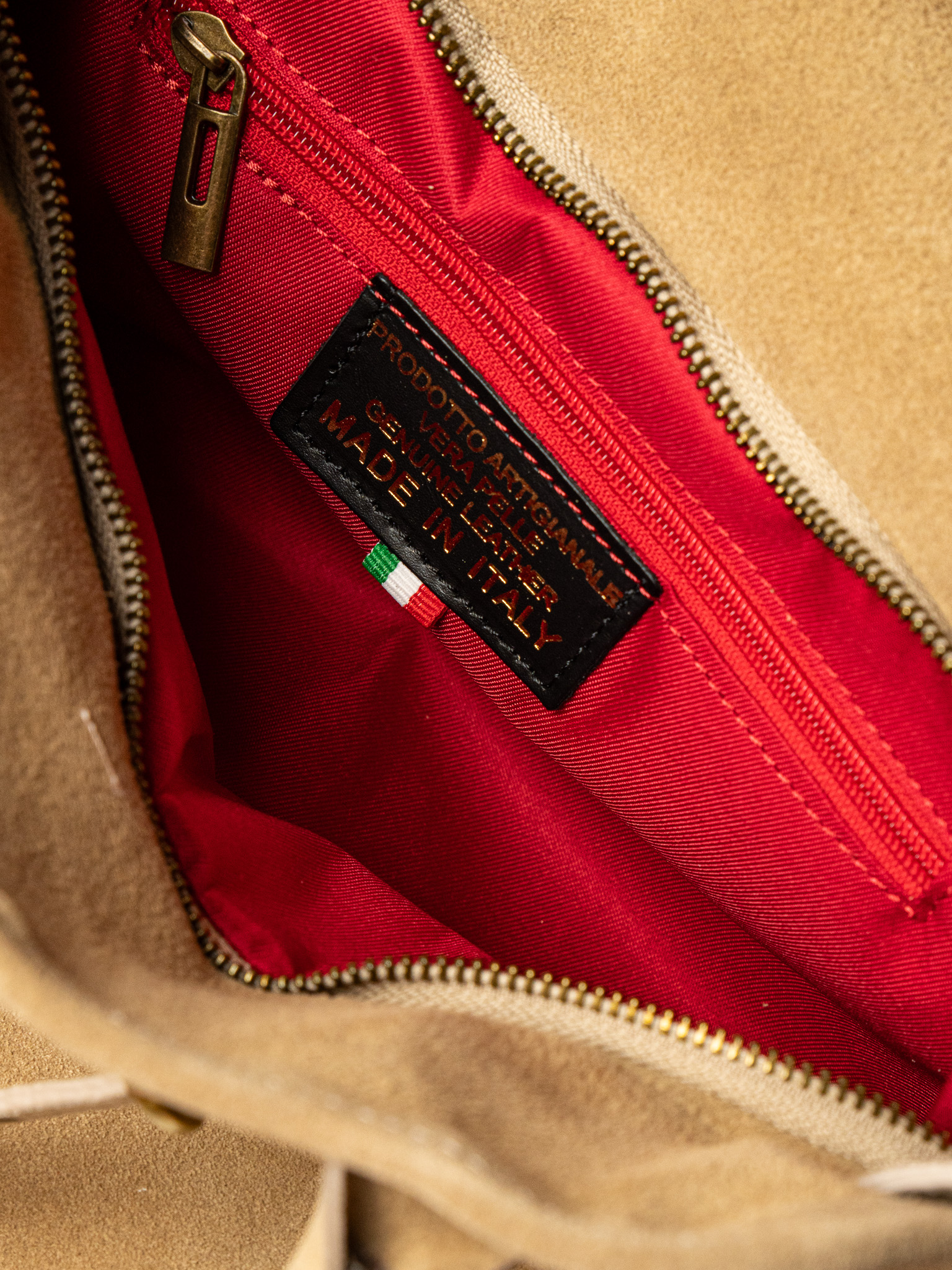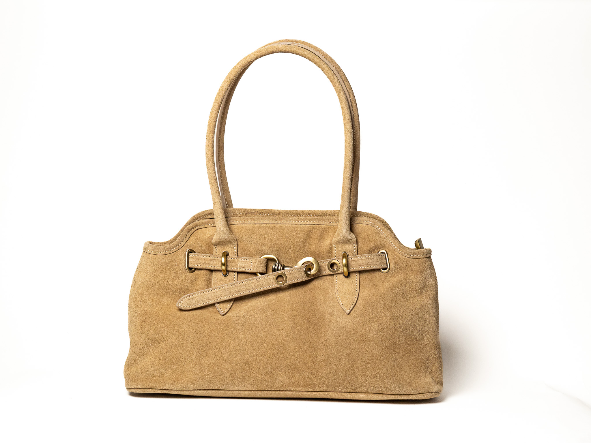 Torebka damska Sarrento wykonana z wysokiej jakości włoskiego zamszu. Klasyczna i elegancka, posiada długie, wygodne uchwyty ułatwiające noszenie na ramieniu lub w dłoni. Ma jedną główną komorę oraz wewnętrzny kieszonkowy schowek na zamek. Idealna na co dzień i do pracy.