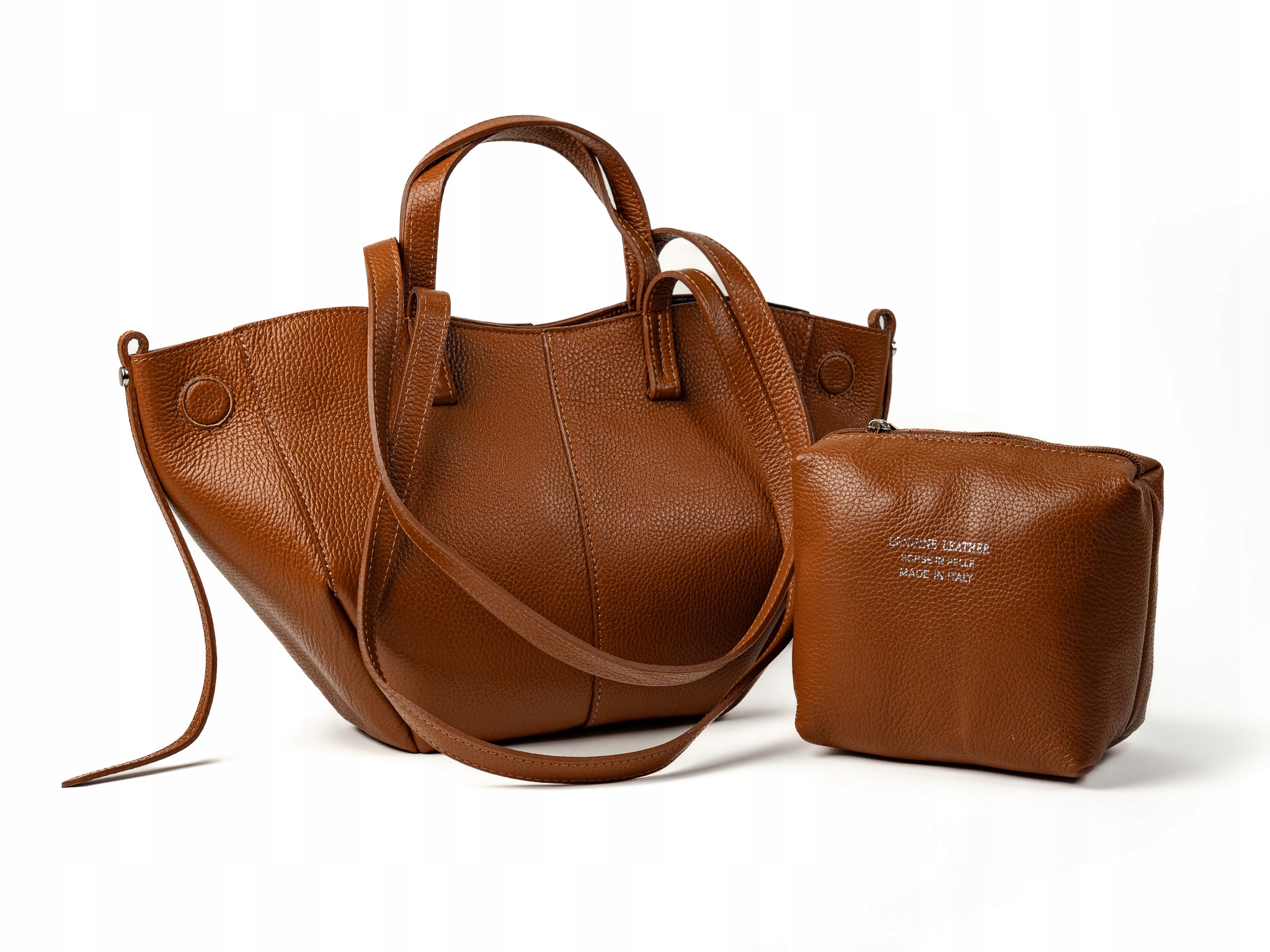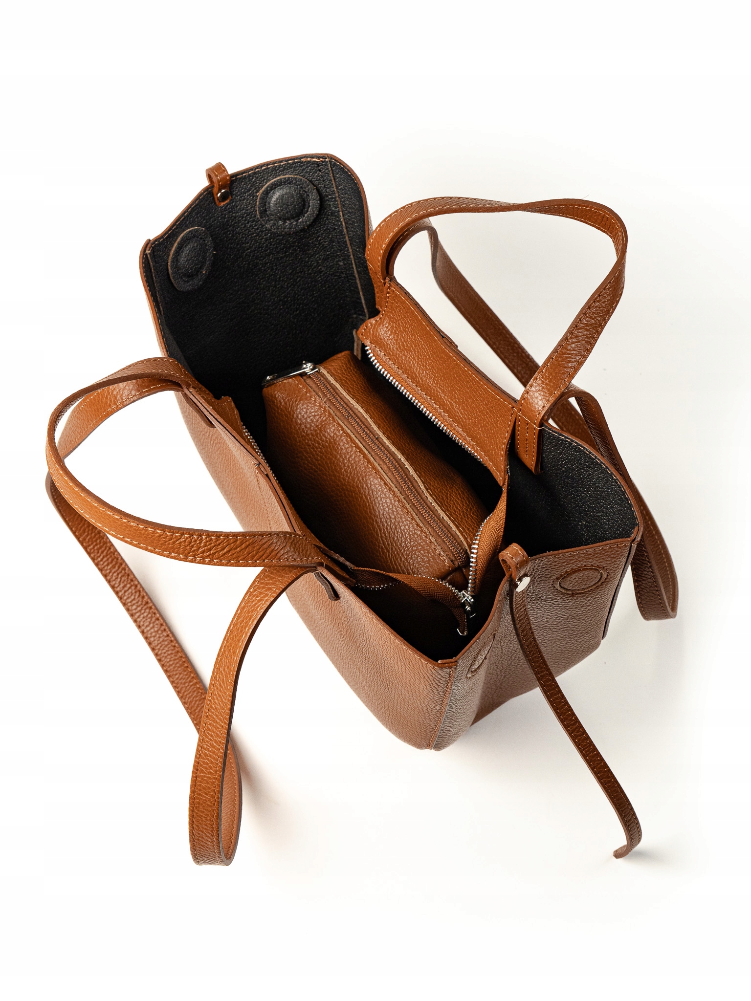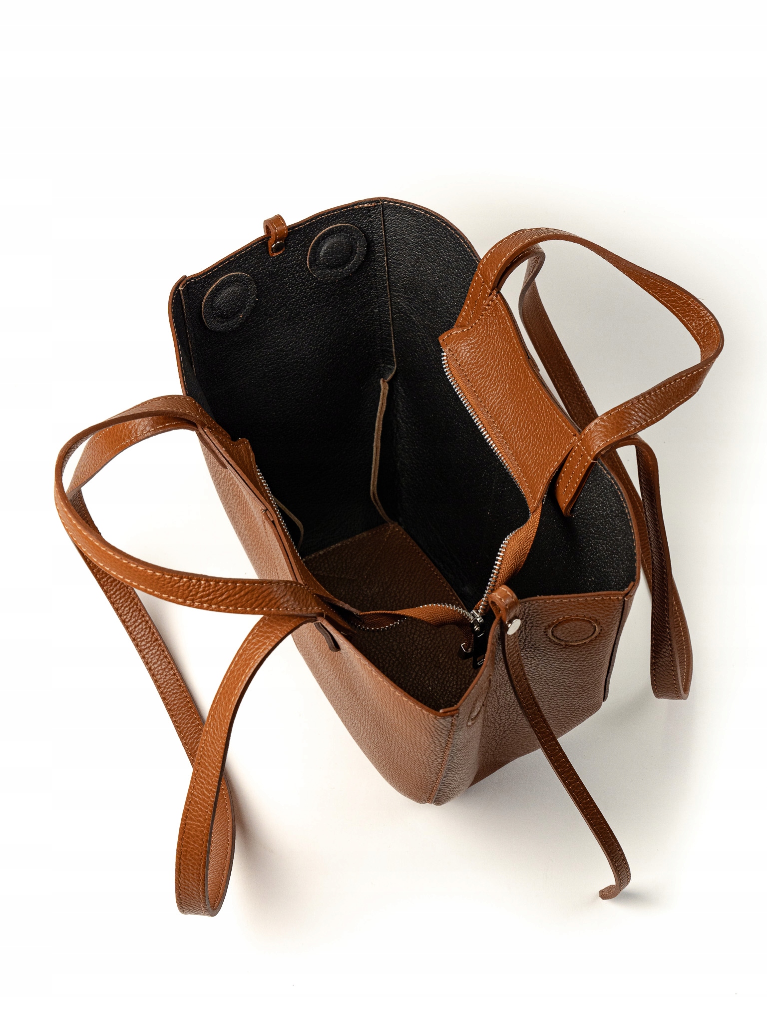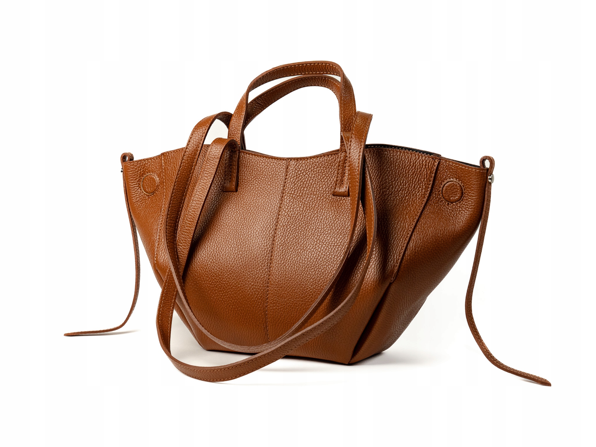 Torebka damska shopper Celia wykonana z wysokiej jakości naturalnej skóry. Posiada jedną dużą główną komorę oraz wewnętrzną saszetkę. Zapięcie na magnesy umożliwia wygodne użytkowanie. Wyposażona w krótkie i długie uchwyty, idealna do noszenia na ramieniu jako shopper. Elegancka, funkcjonalna i wykonana z wysokiej jakości materiałów.