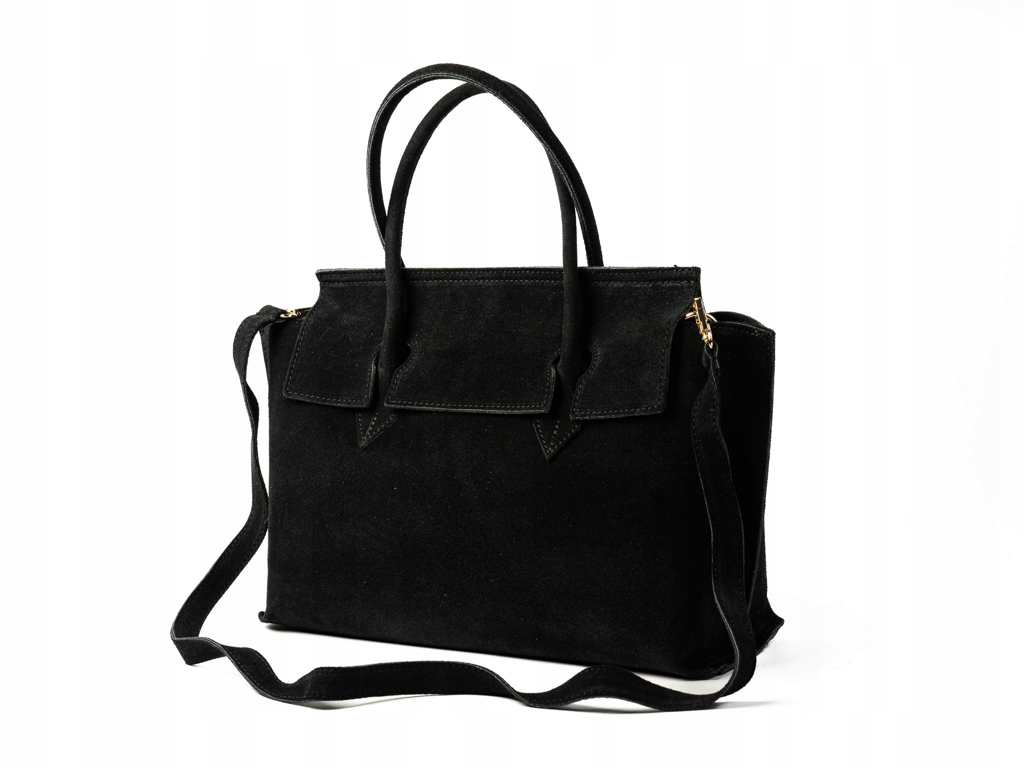 Torebka damska Firenze to klasyczna torba premium wykonana z wysokiej jakości włoskiego zamszu. Elegancka i pojemna, mieści format A4, dzięki czemu idealnie sprawdza się do pracy i na co dzień. Posiada dwie główne komory, które rozdziela środkowa kieszeń na zamek, oraz dodatkowy mały kieszonkowy schowek wewnątrz. Wyposażona w wygodne uchwyty oraz regulowany, odpinany pasek do noszenia na ramieniu.