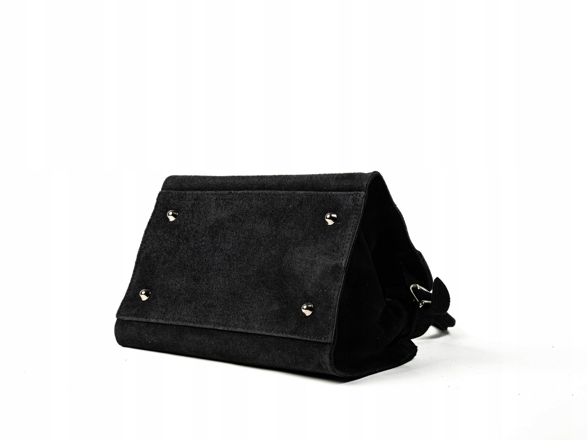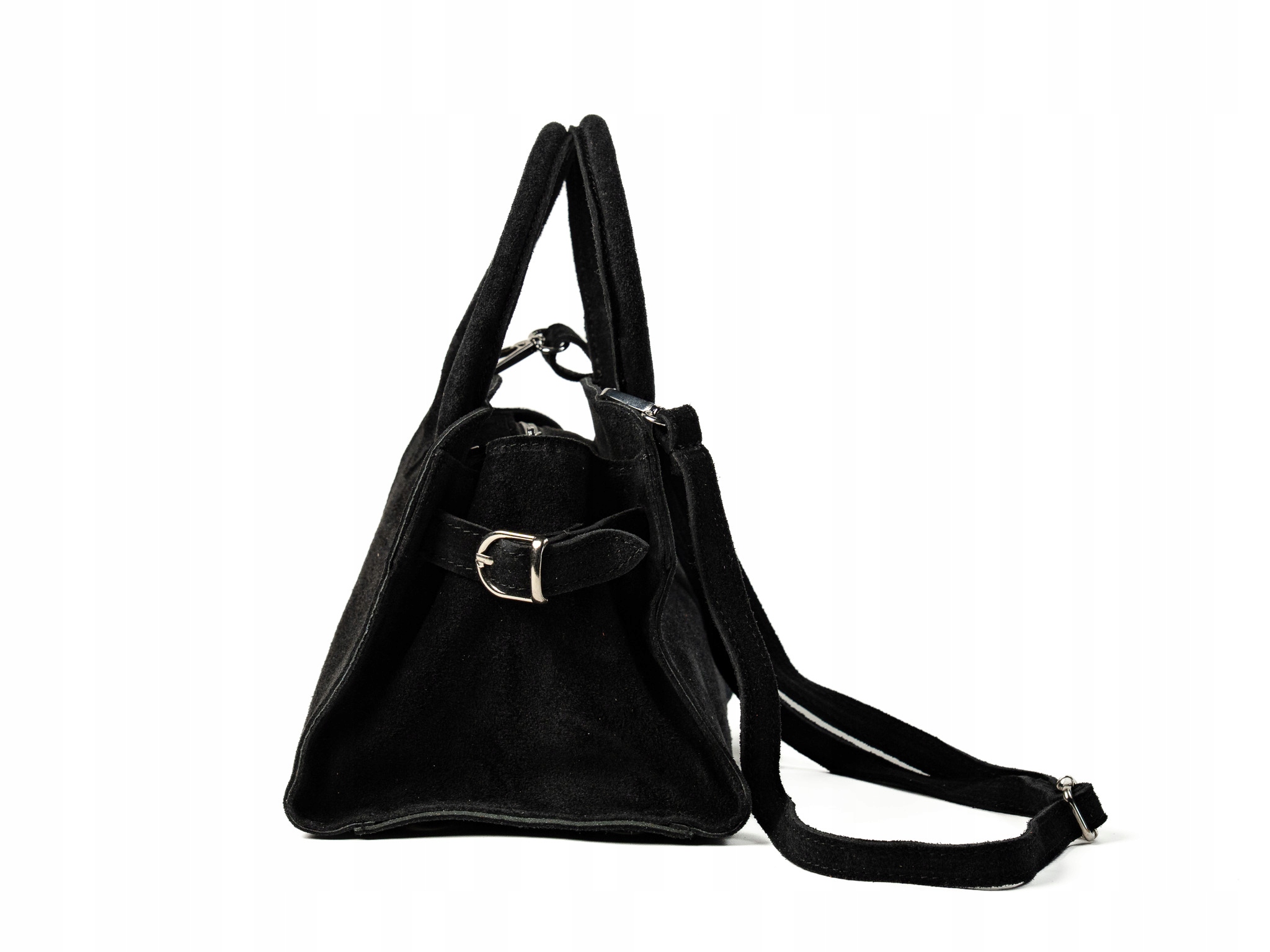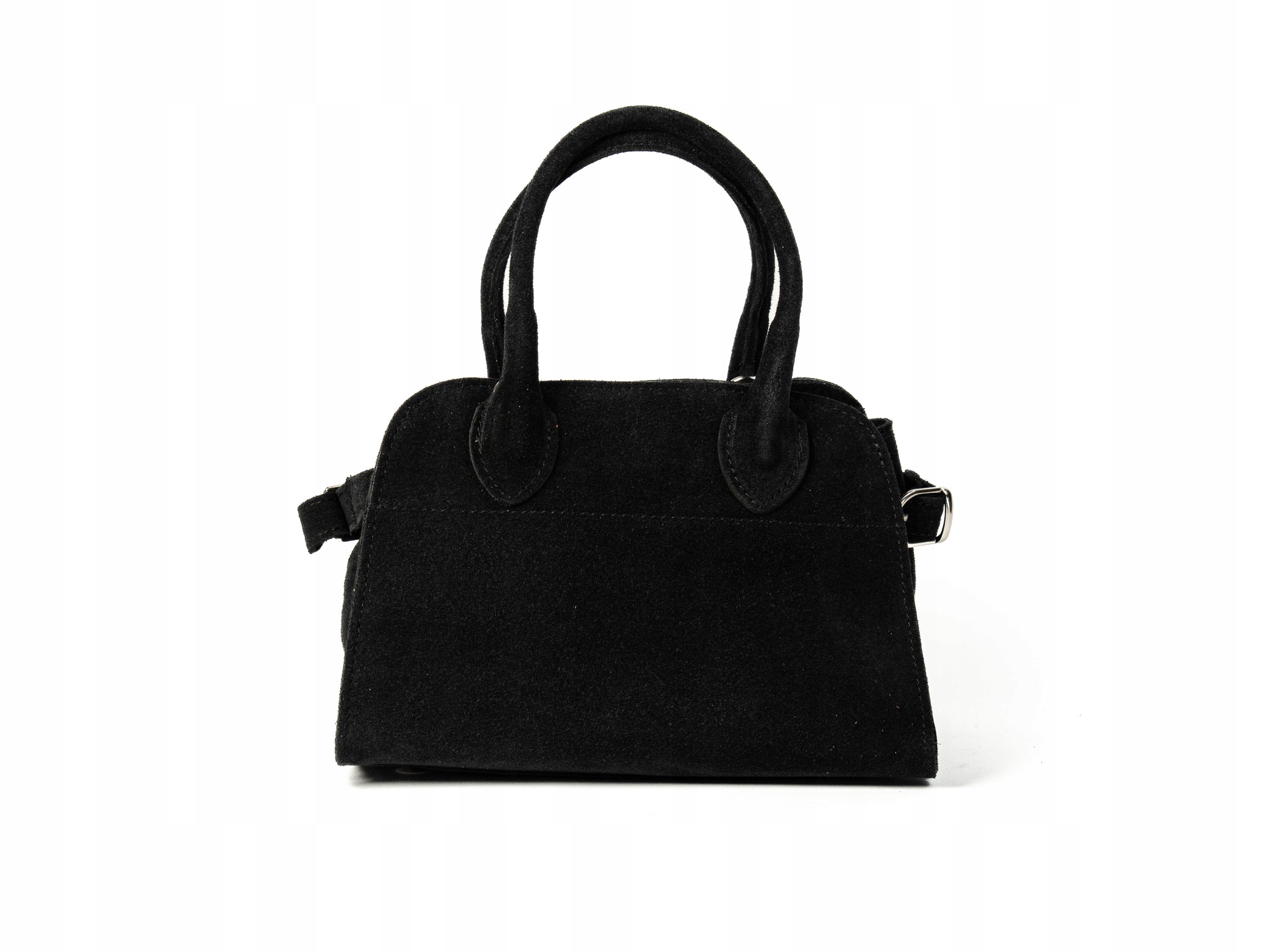 Torebka damska Paolo to elegancki, mały kuferek wykonany z wysokiej jakości włoskiego zamszu. Wygodna do noszenia w dłoni dzięki solidnym uchwytom, dodatkowo posiada regulowany, odpinany pasek na ramię. Pojemna jak na swój rozmiar — idealna na telefon, klucze i inne drobne akcesoria. Doskonała na wieczorne wyjścia i miejskie spacery.