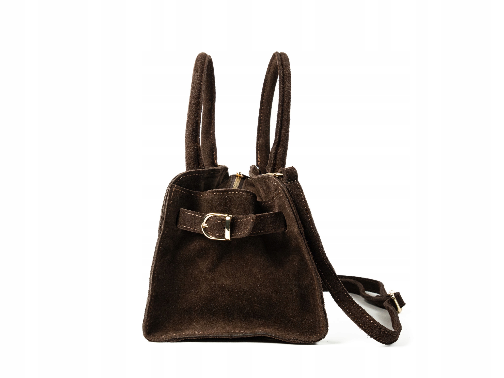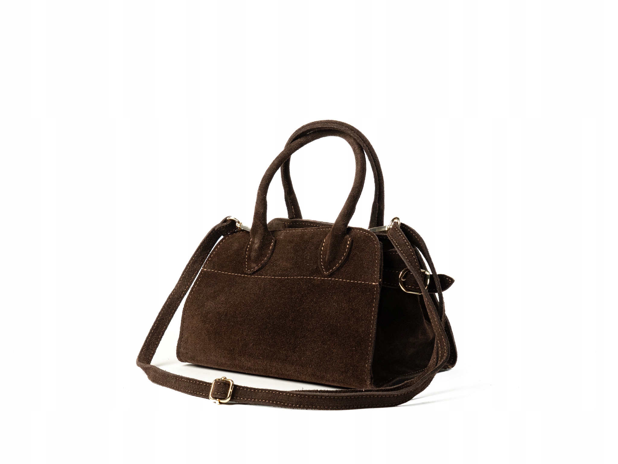 Torebka damska Paolo to elegancki, mały kuferek wykonany z wysokiej jakości włoskiego zamszu. Wygodna do noszenia w dłoni dzięki solidnym uchwytom, dodatkowo posiada regulowany, odpinany pasek na ramię. Pojemna jak na swój rozmiar — idealna na telefon, klucze i inne drobne akcesoria. Doskonała na wieczorne wyjścia i miejskie spacery.
