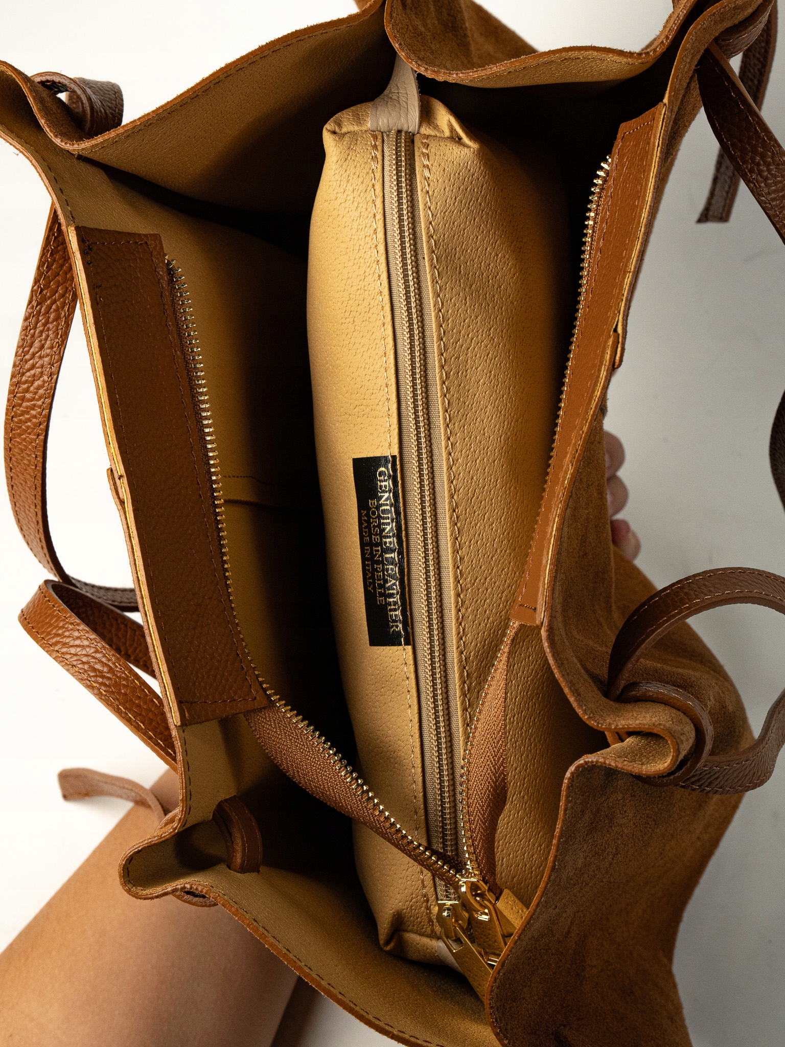 Torebka damska Torino wykonana z wysokiej jakości włoskiego zamszu. Duży i elegancki shoper, posiada jedną główną komorę oraz wewnętrzną saszetkę. Wyposażona w dwie długie uchwyty, które umożliwiają noszenie na ramieniu lub w dłoni. Zapięcie na magnes zapewnia wygodę użytkowania. Idealna na codzienne wyjścia i do pracy.