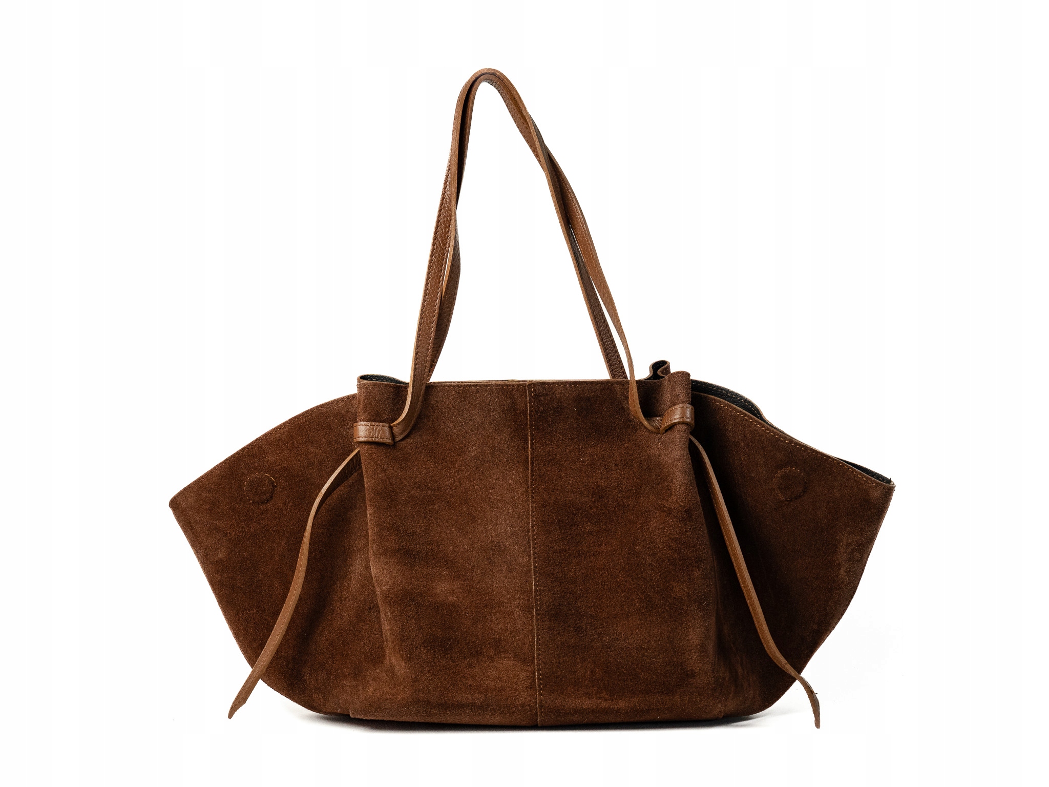 Torebka damska Torino wykonana z wysokiej jakości włoskiego zamszu. Duży i elegancki shoper, posiada jedną główną komorę oraz wewnętrzną saszetkę. Wyposażona w dwie długie uchwyty, które umożliwiają noszenie na ramieniu lub w dłoni. Zapięcie na magnes zapewnia wygodę użytkowania. Idealna na codzienne wyjścia i do pracy.